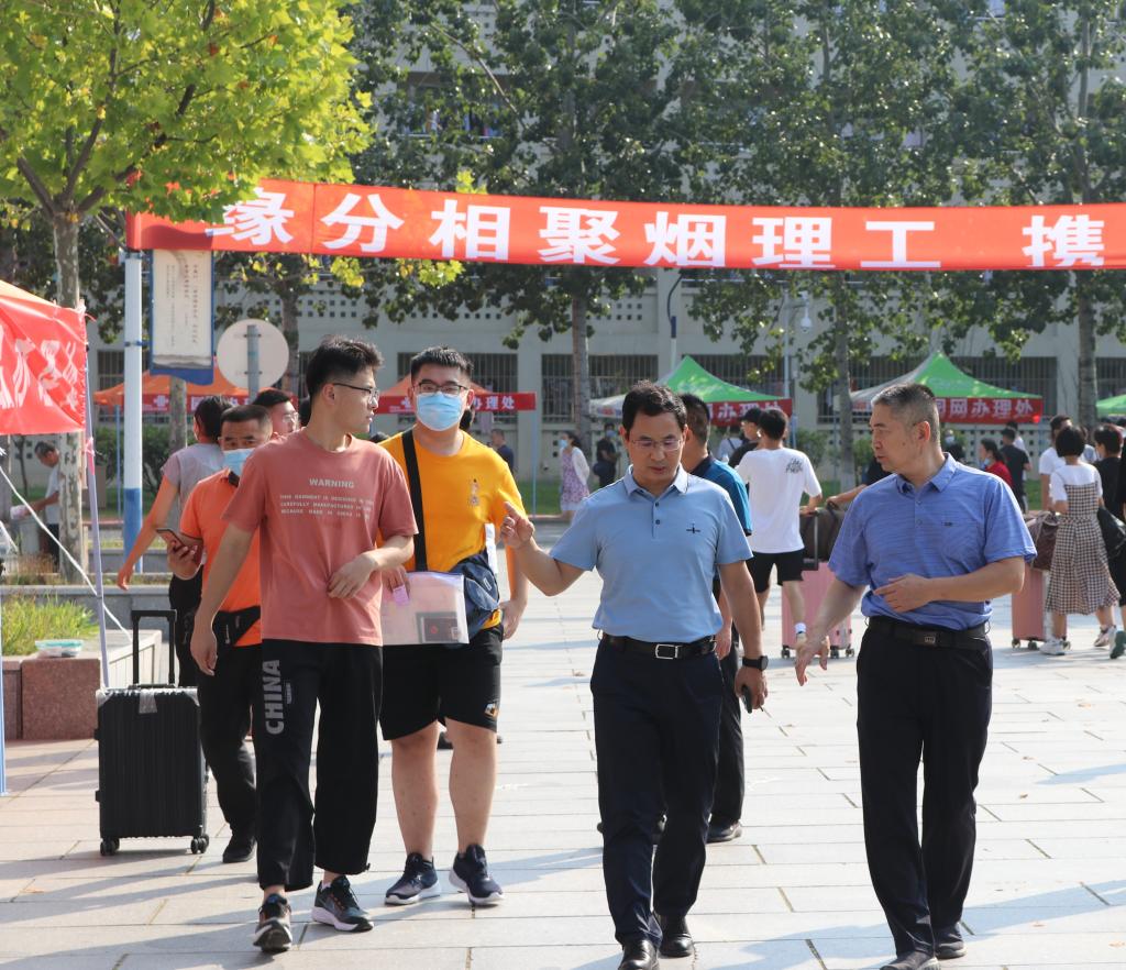 校长于光辉、副校长张仁杰及相关职能部门负责人亲临现场欢迎新生和家长们的到来,悉心询问大家的适应情况,同时对一直忙碌的志愿者们表示慰问。于光辉校长现场寄语新生:烟台理工学院欢迎你们!衷心祝大家在这里度过美好的大学时光!我们学校就是要帮助每一名学生成为更好的自己,将来走向社会,创造个体的幸福,从个体到社会,让社会因你们变得更美好。希望你们树立远大理想抱负,不辜负父母和老师的期望,成为社会的有用之才!
