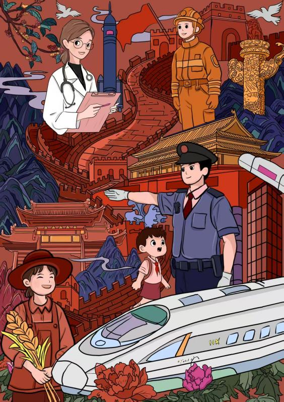 在红色插画主题单元,安平、张涵老师指导的数字媒体艺术专业建2306-1班学生张关宏作品《我与天坛》、石志南作品《星火长征》荣获一等奖;孙嘉懿《革命征程印象》、钟真《新欣向荣》、张瀚升《薪火相传》分获二等奖。这些作品主题鲜明、构思新颖,既体现出扎实的专业基础,也展现了青年一代对红色文化的深刻理解与艺术表达。