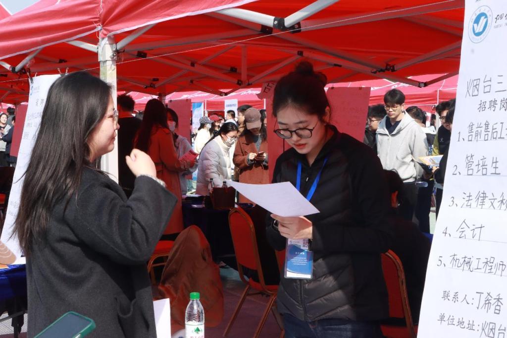 为精准对接地方产业人才需求,现场设立特色招聘专区。其中,烟台市重点企业专区汇聚艾迪精密、杰瑞石油装备、中集来福士等行业龙头企业,聚焦高端制造、新能源、生物医药等核心领域,强化区域重点产业人才供给;访企拓岗专区邀请青岛三利集团、蓬莱大金海洋重工等优质合作企业进校招聘,持续深化校地企合作成效。