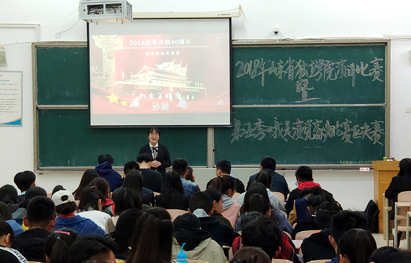 11月2日下午,院团委于二教110教室和111教室举办2018年山东省独立学院演讲比赛校级决赛暨北京卫视《我是演说家》烟台赛区海选活动。团委指导教师及各系辅导员出席活动并担任评委。