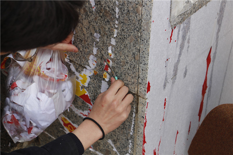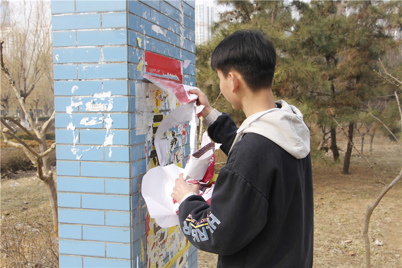 活动中,学生干部充分发挥模范带头作用,学生会成员自带小刀、矿泉水、塑料袋,积极地投入到本次活动中去。同学们用矿泉水先将墙上的小广告润湿,之后用小刀认真仔细地清理,大家分工协作,相互配合,即使天气寒冷,清理的过程艰难而又辛苦,同学们也毫无怨言,用自己的实际行动积极发扬雷锋精神,传承雷锋精神的内涵,勤勤恳恳,踏实肯干,充分体现了会计系学生任劳任怨、无私奉献的优良品质。在大家的努力下,校园的小广告得到了清除,校园环境得到了改善。同学们纷纷表示日后一定会自觉维护校园文化环境,在这个雷锋月更要学习雷锋精神,全心全意为人民服务,立足校园,从我做起,从小事做起,从爱护校园环境做起。