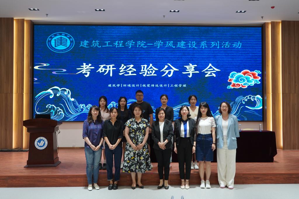 6月8日晚上,建筑工程学院于三教楼六楼报告厅成功举办考研经验分享交流会。邀请优秀学长学姐为在校学生分享考研成功经验。建筑工程学院院长辛翠香,党总支副书记臧延云,全体辅导员老师及学生代表参加本次交流会,副院长丛苏莉主持会议。