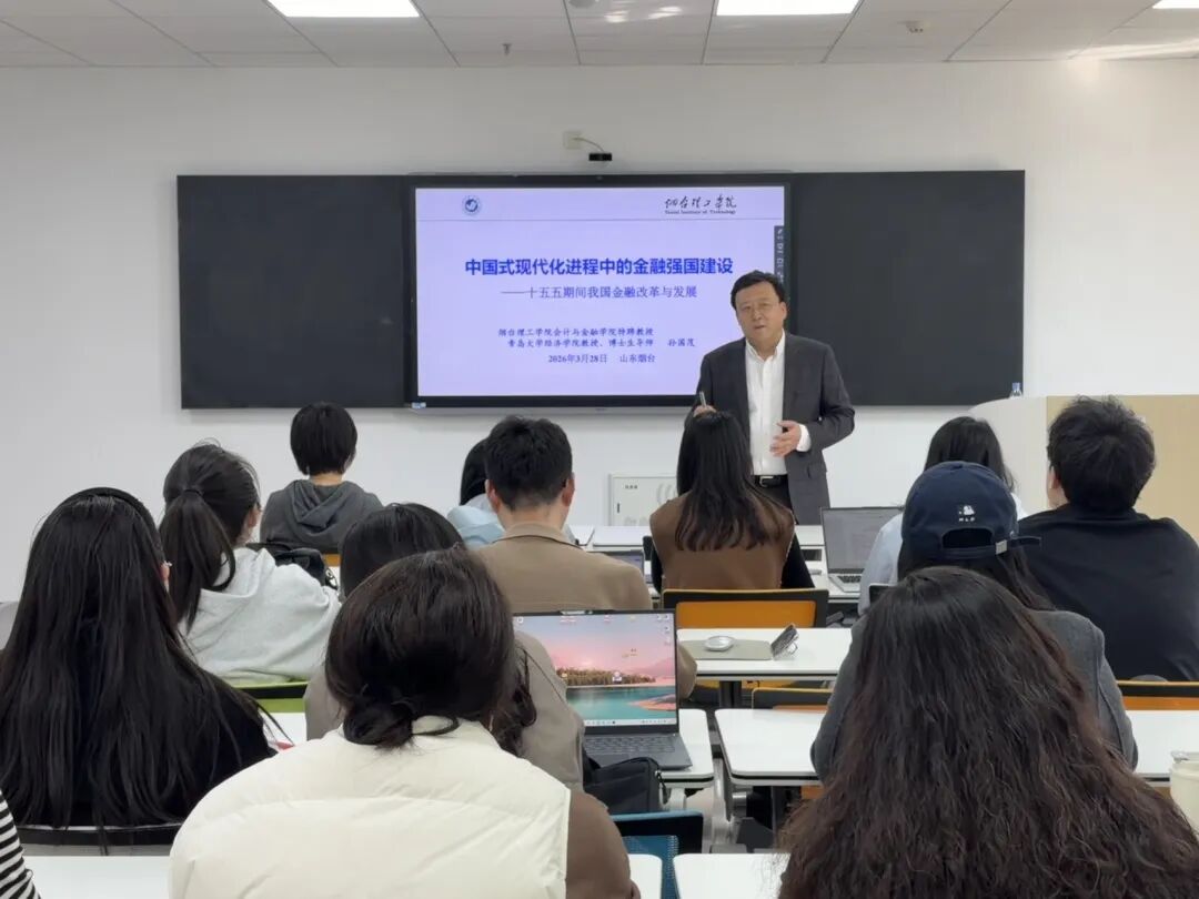 孙教授作为山东省决策咨询委员会专家、省人大常委会专家顾问、省政府研究室特邀研究员及泰山产业领军人才、金融高端人才,用独特的视角对中国式现代化进程中金融改革与发展进行了讲解。会议内容主要分为三大部分:一是金融业发展的里程碑,系统解读了《金融法》的核心意义和重要作用。二是中央金融工作会议精神,通过对历次全国金融工作会议制度逻辑的梳理,强调了其在精准研判金融形势、部署改革任务、防范化解系统性风险中的关键引领作用,为理解我国金融治理体系与治理能力现代化提供了清晰框架。三是金融强国目标与中国式现代化建设,他指出建设金融强国是服务实体经济、推动共同富裕、实现民族复兴的必然要求,需紧扣中国式现代化的本质要求,为中国式现代化建设注入强劲动力。