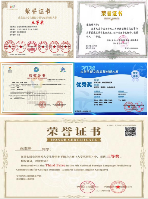 张淑婷始终将学习作为首要任务,依靠踏实与坚持稳步提升学业水平,用努力换来优异成绩。课堂上,她专注听讲、勤于思考,扎实掌握专业知识;课后合理安排时间,坚持在图书馆查阅资料、整理笔记,遇到问题主动向老师和同学请教。她学年综测成绩位列专业第一,13门课程平均分93分,平均绩点3.84(满分4.0)。先后获思源奖学金、祥隆奖学金、国家奖学金,获评学校“优秀学生标兵”,累计获得国家级学科竞赛奖项2项、校级奖项20项。