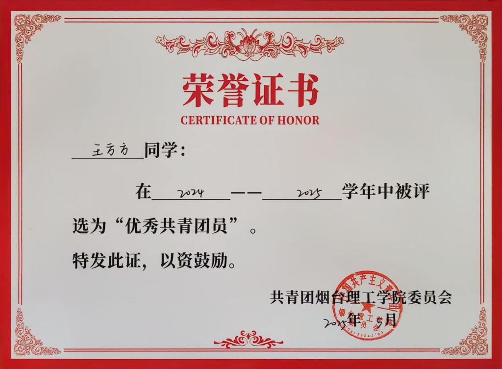 王方方,烟台理工学院外国语学院英语专业的学生,绩点4.13,专业第一,连续三年荣获国家励志奖学金、“优秀共青团员”等荣誉称号,被评为“自强不息先进个人”,26年考研成功考取211——中国矿业大学(北京)英语笔译专业。