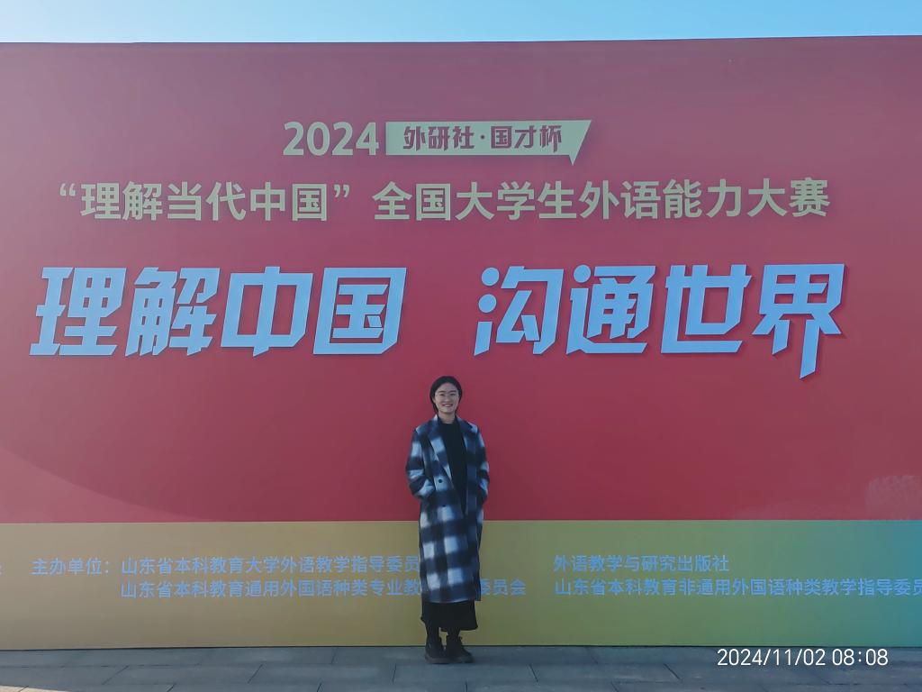 此外,她还积极参加创新创业类竞赛,在中国国际大学生创新大赛(互联网+)山东省总决赛中夺得银奖,项目名称为《旧辞新话,文育青衿——基于VR技术的中小学古诗词创新性教育》。凭借着对语言的热爱,她还在汉语类竞赛中实现了无畏的盛放与自我的圆满,获得全国大学生语言文字能力大赛全国决赛二等奖(15%)。
